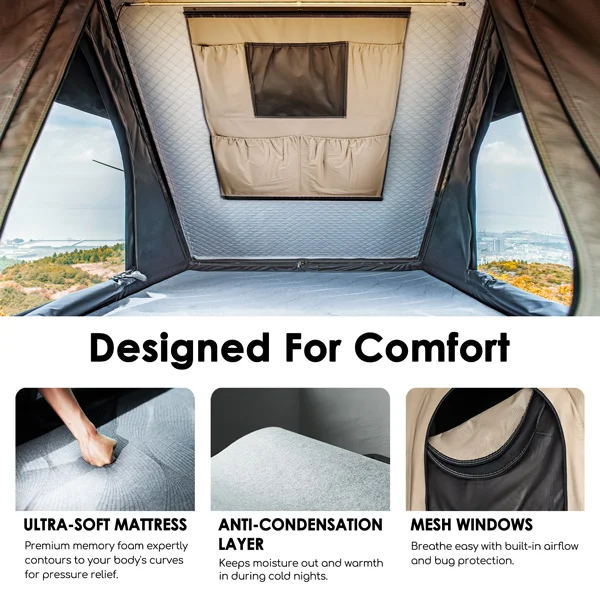 Climate Management: An exhaust fan prevents moisture buildup, and a built-in diesel heater entry port so you can easily connect your diesel heater to keep you warm during cold nights