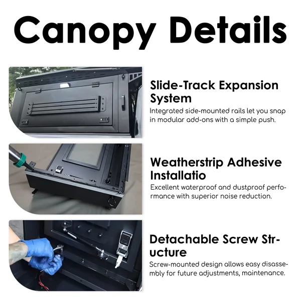 Ample Storage: Store your essentials securely in the truck bed and access them easily through the canopy’s design.